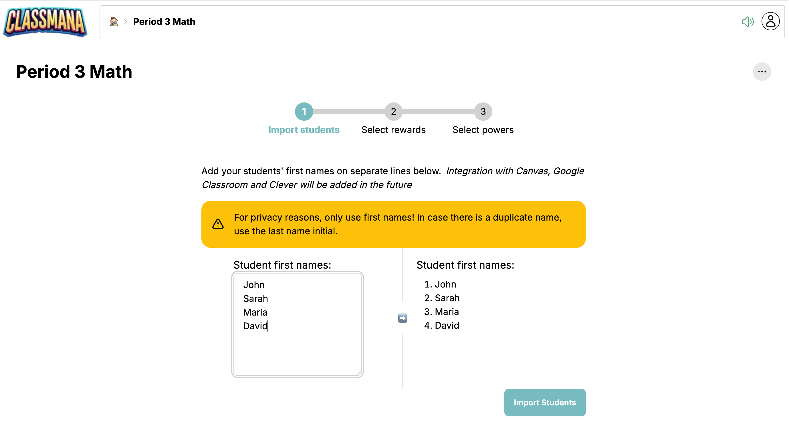 Kattints a "Tanulók importálása" gombra, amikor kész vagy (vagy hagyd ki, hogy később add hozzá a tanulókat).