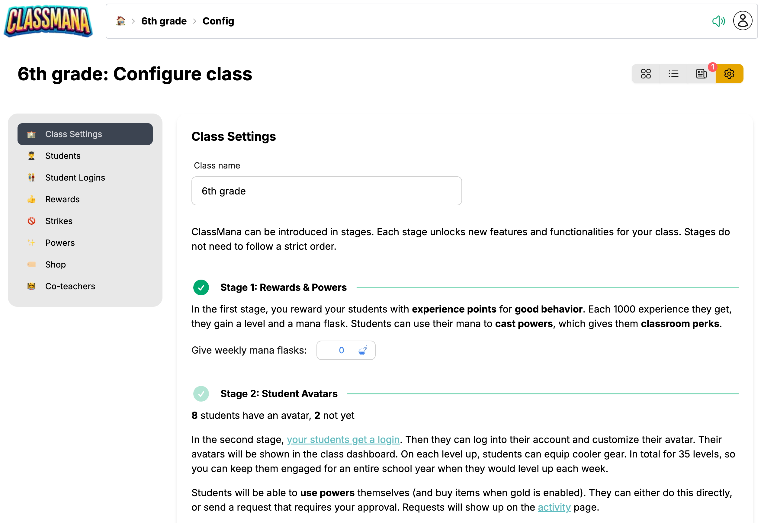 Amikor a diákok bejelentkeznek, közvetlenül az avatar irányítópultjukról használhatnak erőket és vásárolhatnak bolt tárgyakat. Te döntöd el, hogy azonnal használhatják-e a tárgyakat, vagy előbb a te jóváhagyásodat kell kérniük.